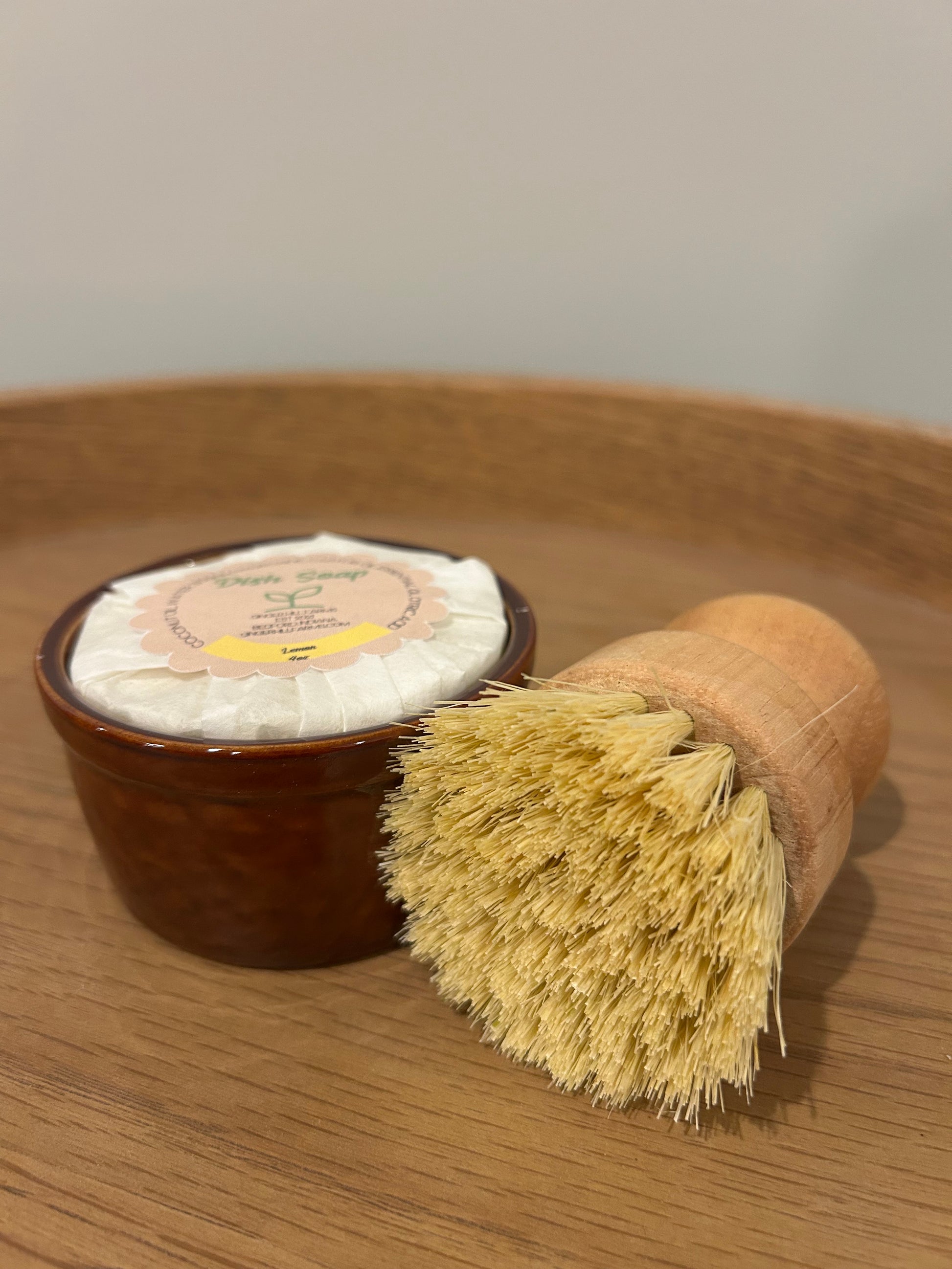 Our Lemon Zero-Waste Dishwashing Set makes sustainable dishwashing simple and enjoyable. This set includes our lemon essential oil solid dish soap, a ceramic ramekin to keep it dry, and a bamboo dish brush with sisal bristles for effective cleaning—without plastic waste.